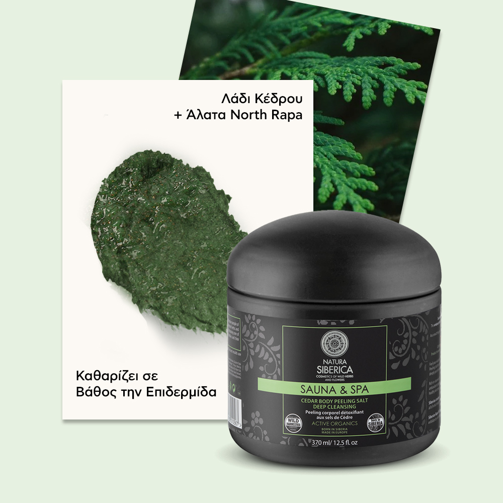 Ανακάλυψε το Peeling Σώματος Sauna & Spa, Cedar Salt για Βαθιά Απολέπιση, 370ml από τη Natura Siberica, την απόλυτη φροντίδα περιποίησης σώματος για αποτελεσματική Απολέπιση - Peeling, βαθύ καθαρισμό και αναζωογόνηση της επιδερμίδας. Η σειρά Sauna & Spa είναι ειδικά σχεδιασμένη για την περιποίηση του δέρματος.