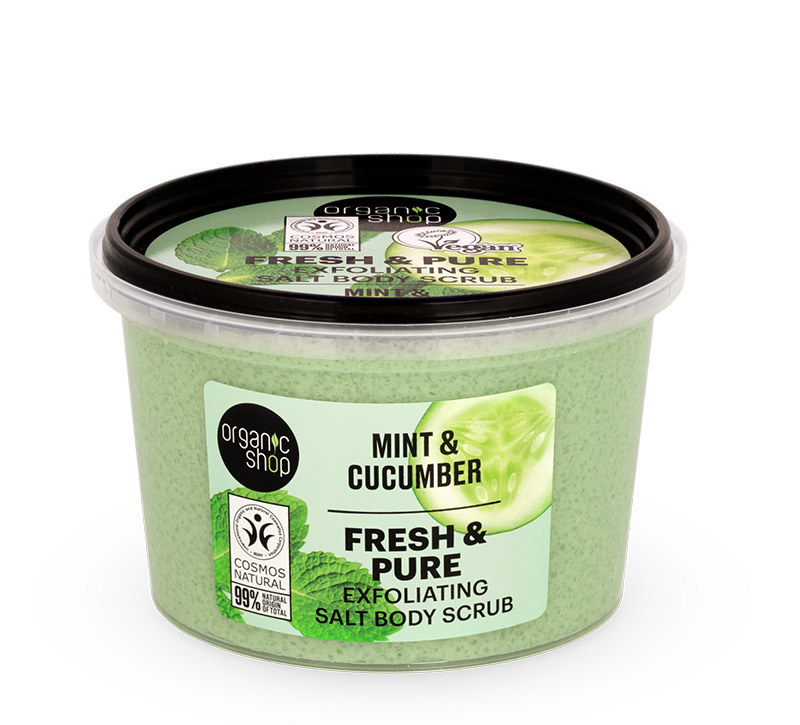 Το Scrub Σώματος Organic Shop Basic με Αλάτι, Μέντα & Αγγούρι είναι η ιδανική επιλογή για φυσική Απολέπιση - Peeling και ολοκληρωμένη Περιποίηση Σώματος, προσφέροντας μια δροσερή αίσθηση καθαριότητας και ανανέωσης, μέσα από την αγνότητα της σειράς Organic Shop Basic.